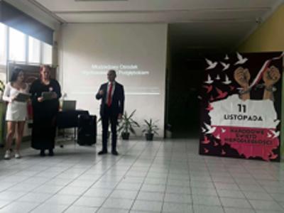 W tym samym czasie Pan Dyrektor MOW Karol Grochowski wraz z przedstawicielkami Samorządu Wychowanek brał udział w powiatowych obchodach Święta Niepodległości Łęcznej.