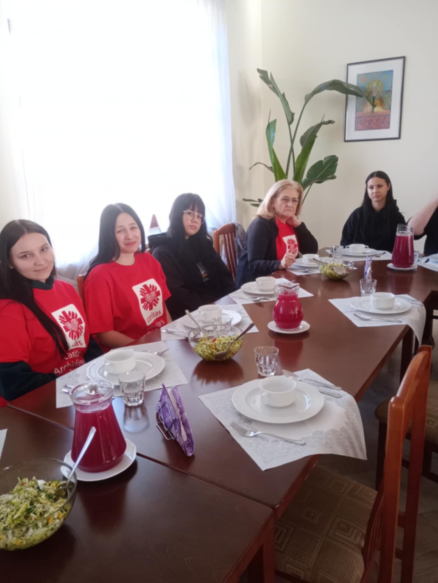 Po pracy zjedliśmy pyszny obiad wspólnie z innymi wolontariuszami i osobami zamieszkującymi placówkę.